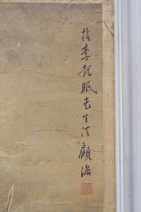 raffigurante scena di vita quotidiana con Guanyin. Iscrizione in alto a destra. Provenienza: dalla collezione d'arte di un importante Hotel di Via Veneto - Roma. Difetti