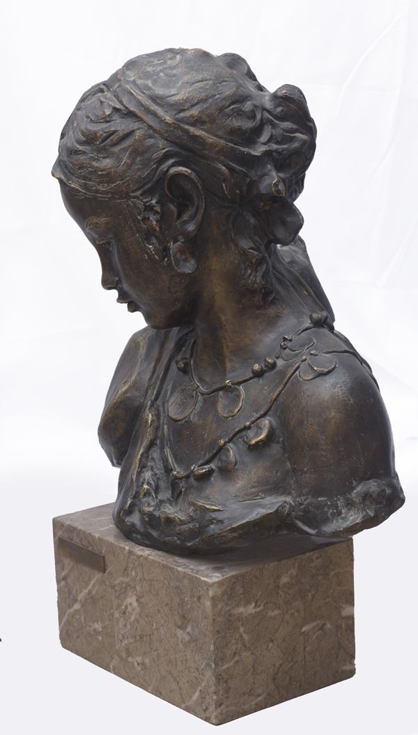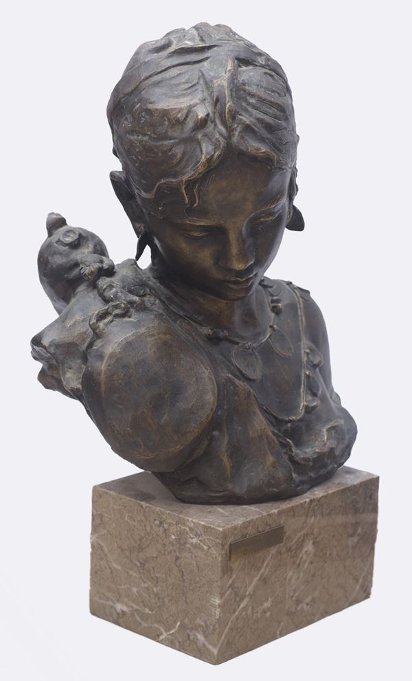 Su base in marmo, dimensioni: H. 11,5 x 22 x 14,5 cm