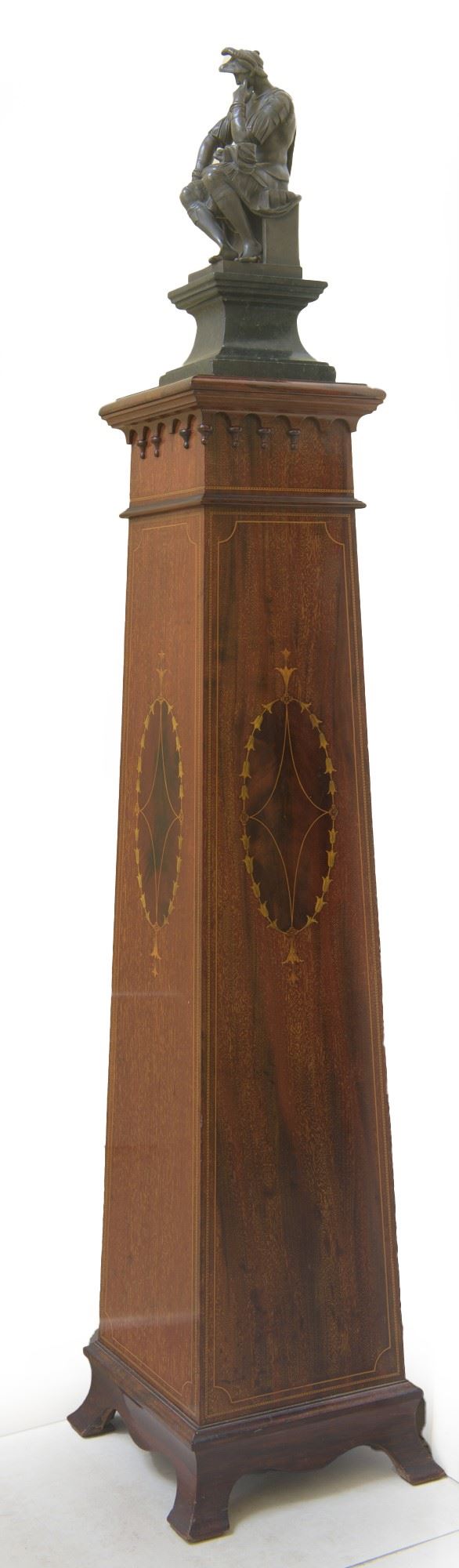 Colonna in mogano con intarsi geometrici (mancanze). Manifattura inglese, metà del XIX secolo. Dimensioni: H 106 x 28 (base inferiore) cm.