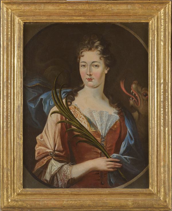 SCUOLA GENOVESE - Ritratto di dama come Santa Margherita d'Antiochia, metà del XVIII secolo