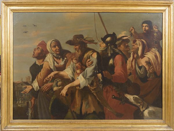 Il dipinto, con ogni probabilità, è opera di un artista attivo nel centro Italia nella seconda metà del XVII secolo, specialista nella raffigurazione di scene di genere e, in particolare, nella rappresentazione di affollate scene di vita urbana e campestre di gusto bambocciante. In cornice coeva.