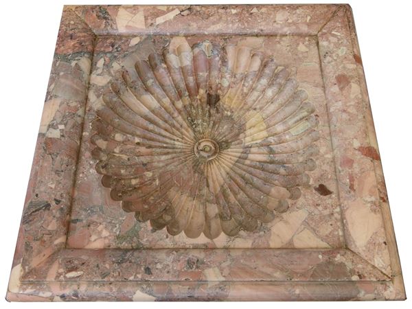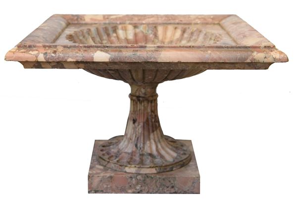 di forma quadrata, poggiante su basamento scanalato. In marmo portasanta. Periodo del Gran Tour. Nei modi di Boschetti.