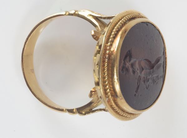 pasta vitrea incisa a cameo, in oro 14 kt , peso totale 10,90 gr. lievi difetti
