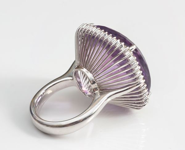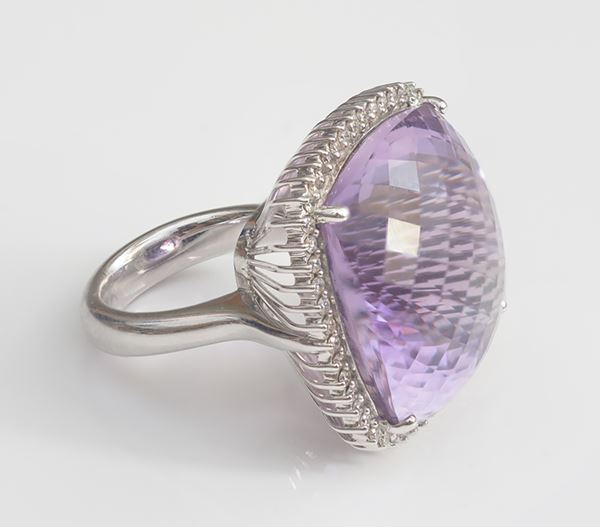 con ampia ametista centrale e brillantini per un carato, grammi lordi 35