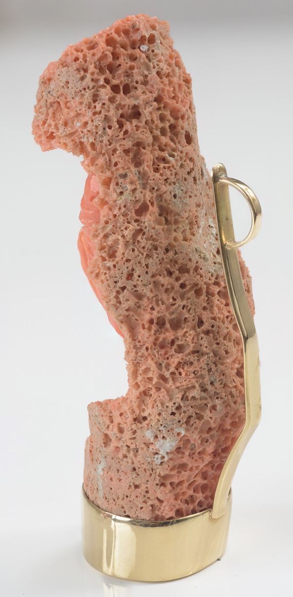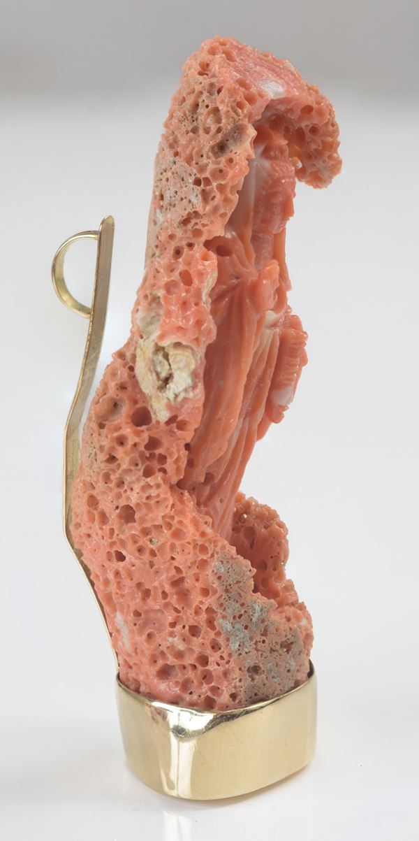 con corallo inciso e montatura in oro 14 kt, peso totale 52,10
