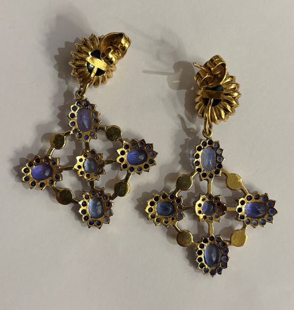 con zaffiri cabochon. Elemento amovibile con zaffiro centrale cabochon e zaffiri tondi. Peso Gr. 36.88