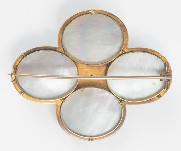 Spilla in oro 14 kt e madreperla, metà XX secolo