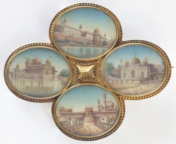 con quattro miniature su madreperla, lievi imperfezioni. Peso totale 28 gr.