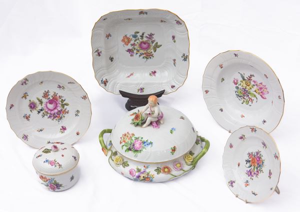 Herend - Servizio di piatti per 6 persone, mod. Bouquet de fleurs, 1941 - 1942