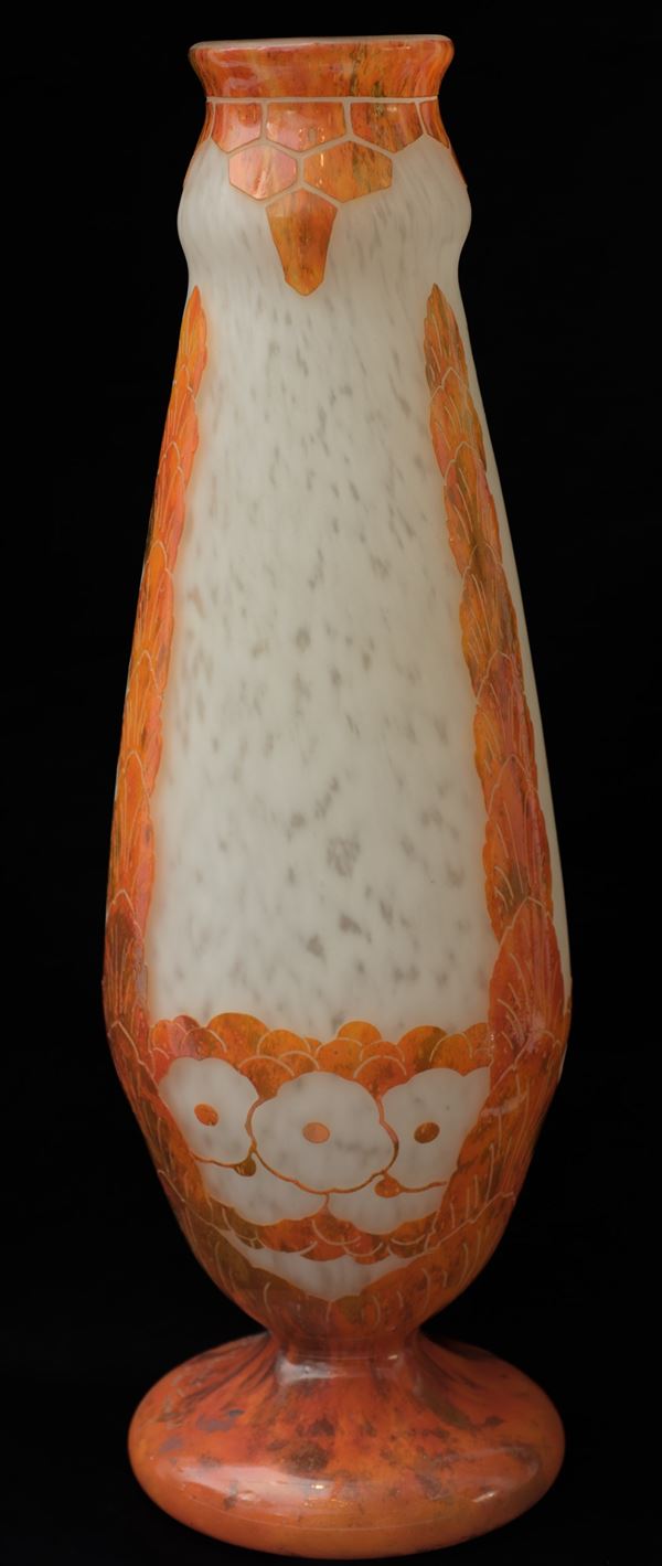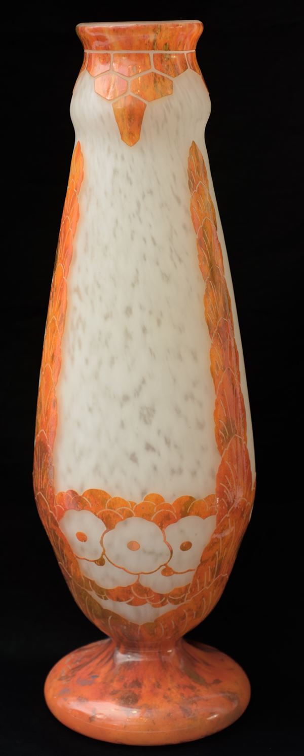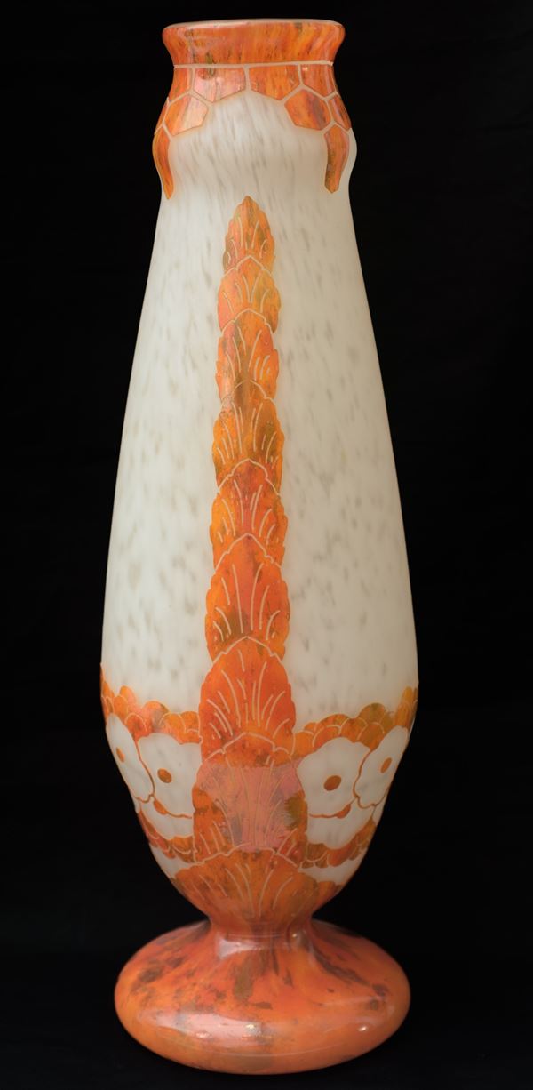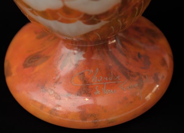 Con decoro di fiori inciso ad acido. Firma alla base incisa a punta: Cherder Le Verre Français.