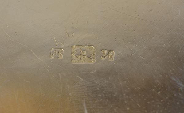 Con punzoni WMF (Württembergische Metallwarenfabrik). Con bordo cesellato a motivi liberty.