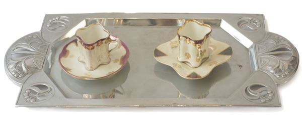 WMF - Vassoio con due tazze da caffè Ginori, anni '30 del XX secolo