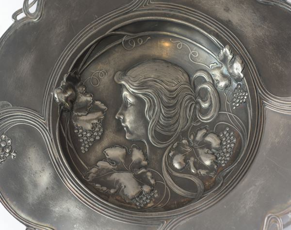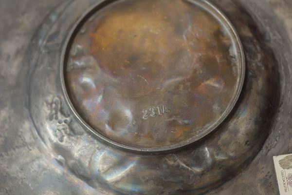 Con cesellatura a bassorilievo. Con punzoni WMF (Württembergische Metallwarenfabrik).