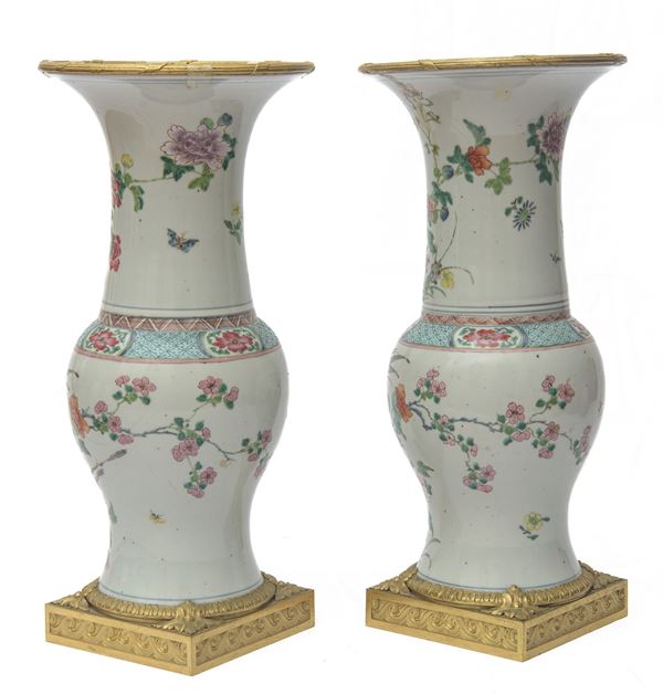 Coppia di vasi a tromba, Cina, Dinastia Qing; XIX secolo