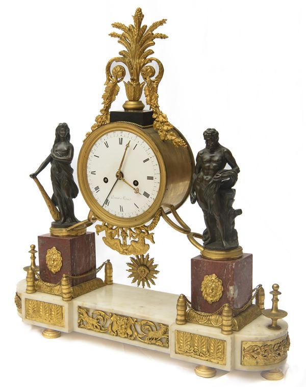 Importante orologio a pendola detto "A Portico", Francia, Luigi XVI, fine XVIII secolo