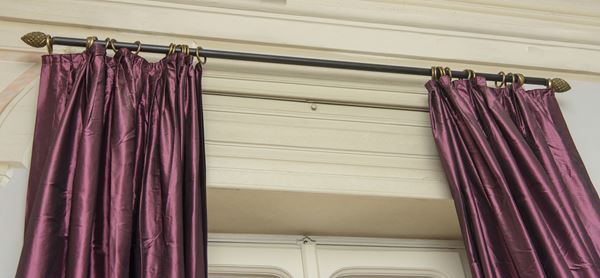 Dimensioni port embrasse: D. 5 x 11 cm; dimensioni bastoni: 173 cm. Con tendaggio pertinente. Gli oggetti sono presentati da smontare a carico dell'acquirente.