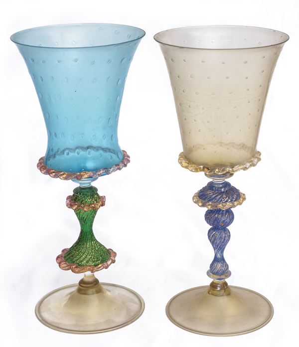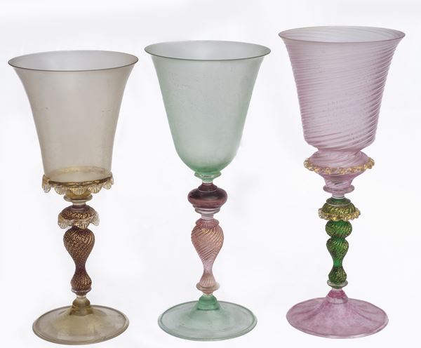Quattro bicchieri misurano: 22 cm; un bicchiere misura: 23,5 cm; la coppa misura: 26 cm.