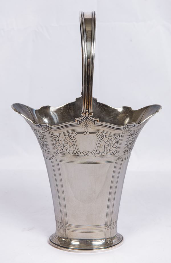 Con profilo sagomato e decoro nel bordo con decori Liberty a greca e foglie. Peso: 462 gr.