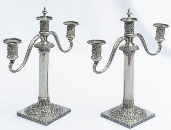 A due luci, con bracci a volute. Peso: 840 gr.; 848 gr.