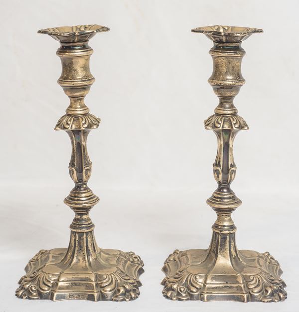 Coppia di candelieri in argento a stelo, Manifattura Inglese, Londra, fine XIX secolo