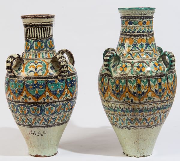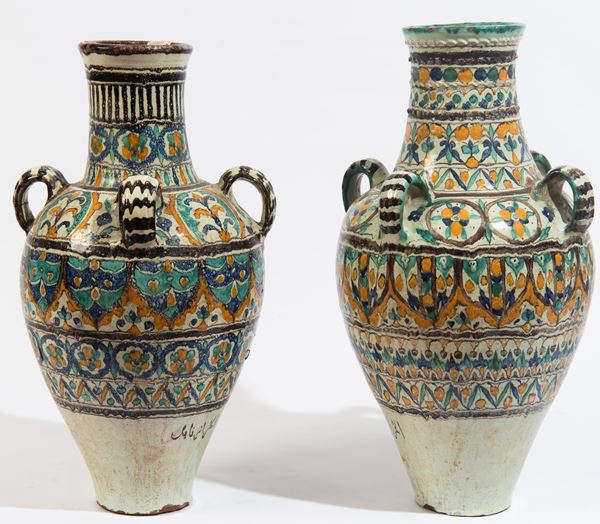 Coppia di vasi in maiolica policroma, Nord Africa, metà XX secolo