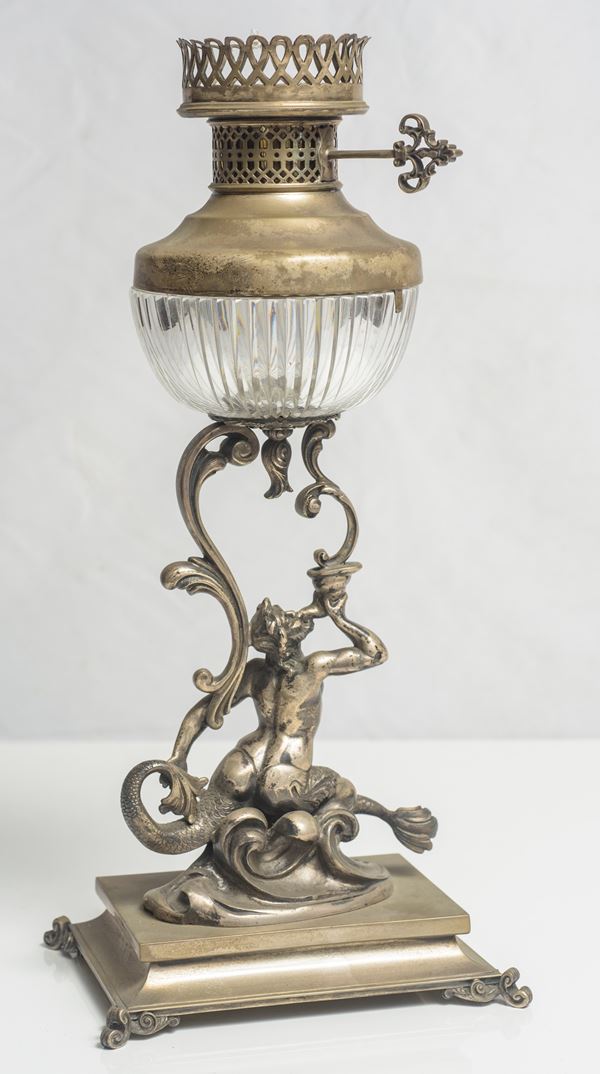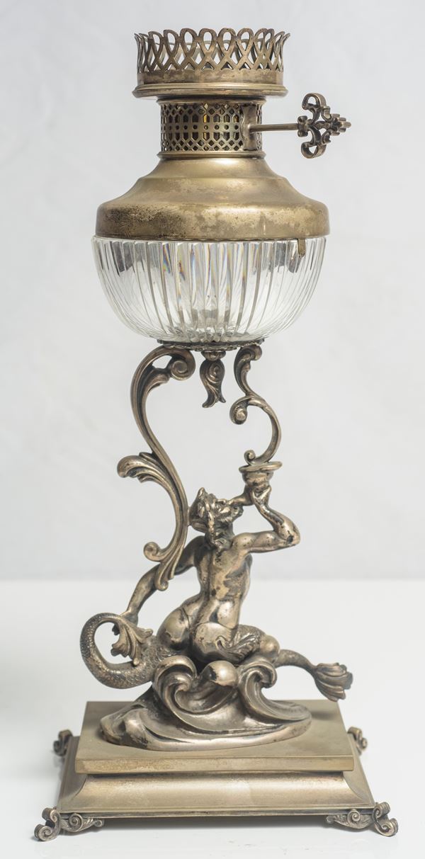 Lampada a petrolio in argento, Manifattura italiana, inizio XX secolo