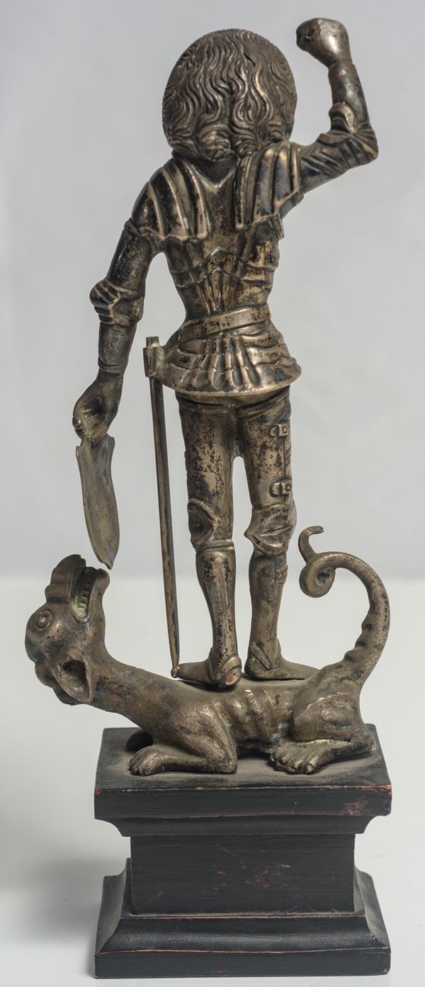 Scultura raffigurante San Giorgio e il drago in argento, Manifattura tedesca