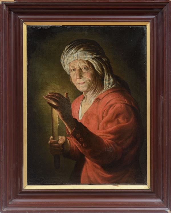 Anziana con candela, Pittore caravaggesco, XVII secolo
