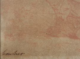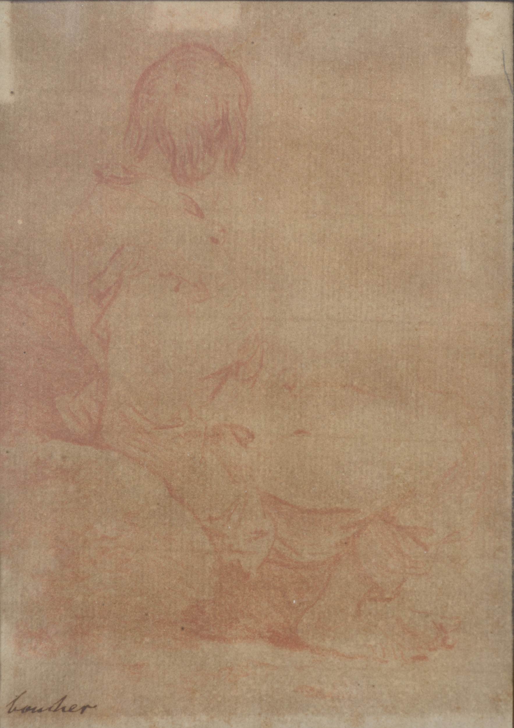 Il disegno si confronta da vicino con altri fogli autografi di Boucher, come A Boy Seated on a Stone, turned to the left (sanguigna su carta vergata con filigrana, 15,3 × 11,3 cm), già in collezione privata e passato in asta (Koller, Zurigo, 2008).