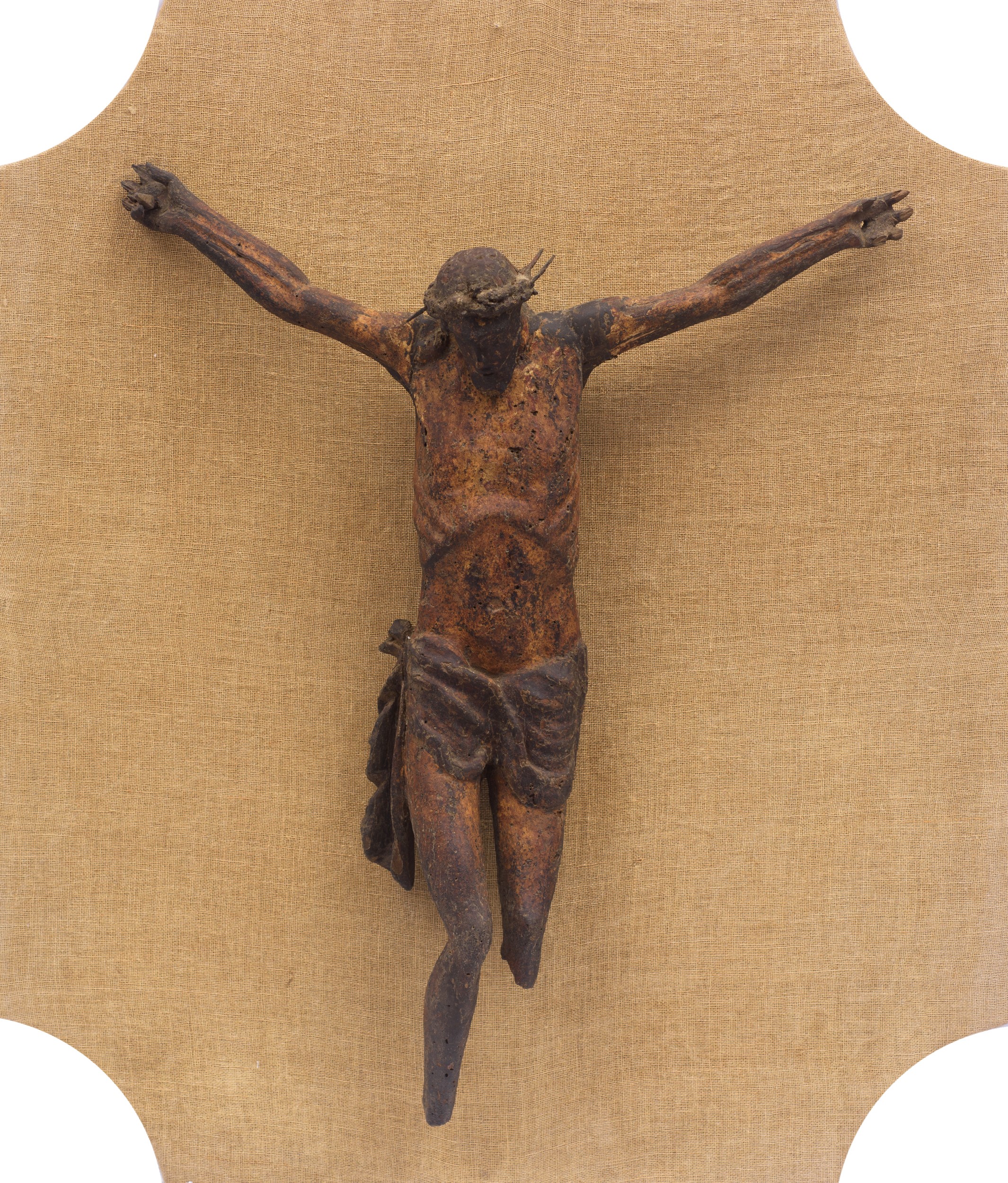 scultura in legno, applicato su pannello di compensato moderno. Tracce di policromia d'origine. Lacune e difetti.