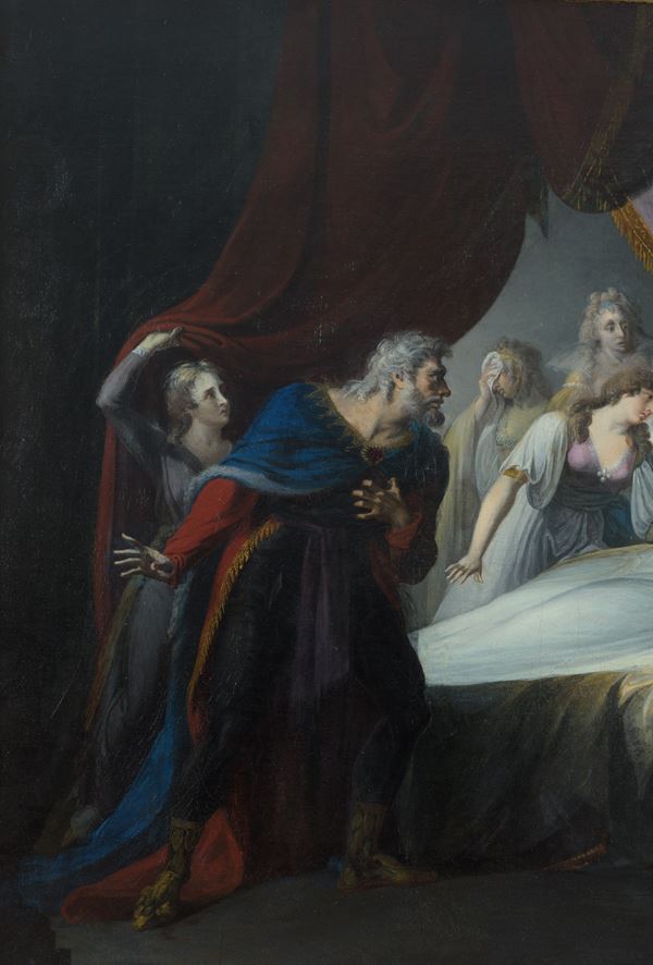 La tela, di sicuro tema iconografico shakespeariano, presenta, sia per i caratteri stilistici che per la tipologia stessa delle figure, i modi tipici del grande pittore svizzero. Claudio Strinati, nell'expertise relativa a quest'opera redatta il 2 Dicembre 1996, riconosce infatti la piena paternità a Füssli: l'assetto complessivo della composizione e la teatralità dell'opera, non lascerebbero a suo parere alcun dubbio sull'attribuzione.