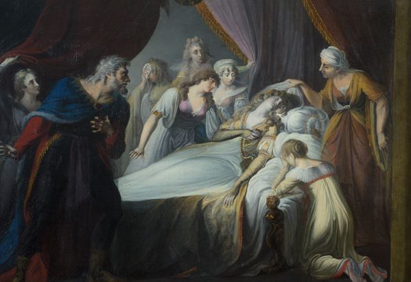 L'atteggiamento romantico dei personaggi e la teatralità della composizione, come il raggio di luce che si concentra sul corpo della donna esanime al pari di un moderno occhio di bue, ci rende primi spettatori della scena, proprio come se si trattasse di un dramma rappresentato sul palcoscenico di un teatro.