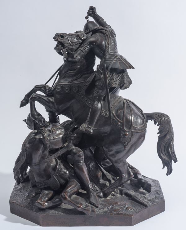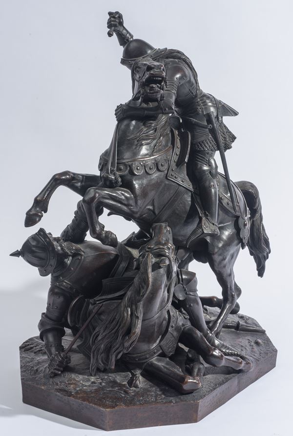 Iscritto: "Th. Gechter - Jeanne d'Arc". Mancanza di una spada.