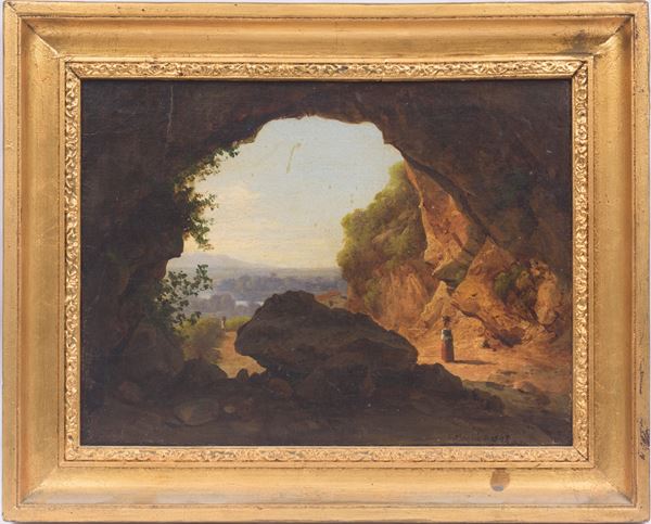 Firmato e datato in basso a destra. Iscrizione al retro "Grotta di Pippi alle Cave di Oliveto Sopra Pisa di Carlo Markò". Entro cornice