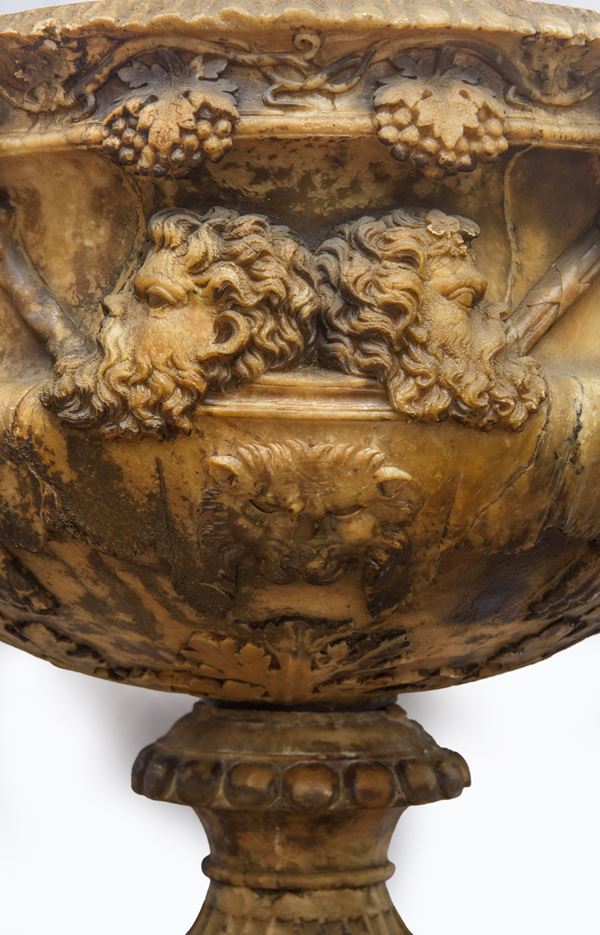 Monumentale vaso in alabastro scolpito, Italia, inizi del XIX secolo