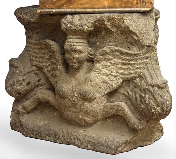 Plinto in peperino scolpito, Produzione Toscana, metà del XVI secolo