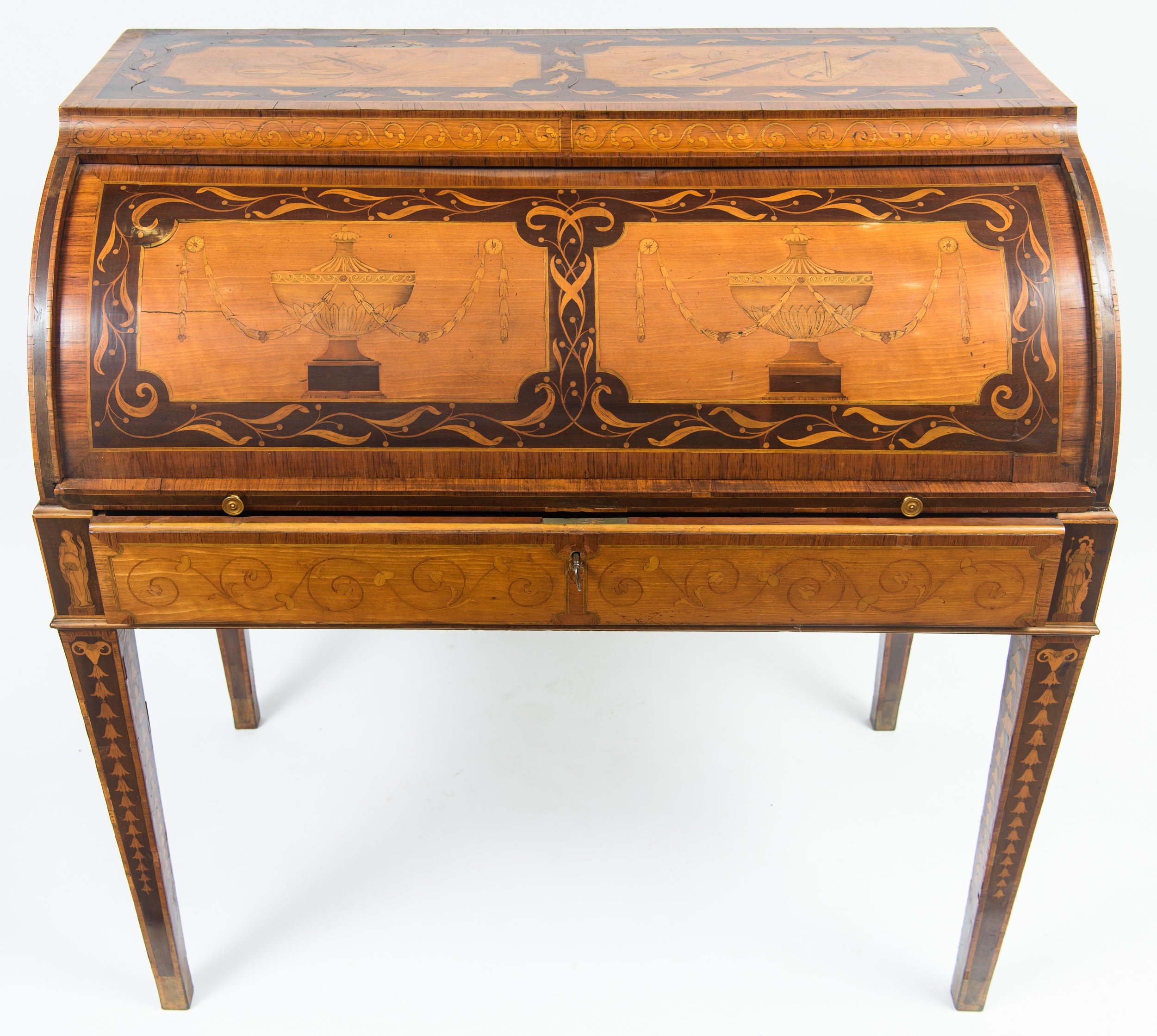 in legno di acero, amaranto, satinwood e legni vari di frutta, vari intarsiati a motivi di strumenti musicali ed anfore.