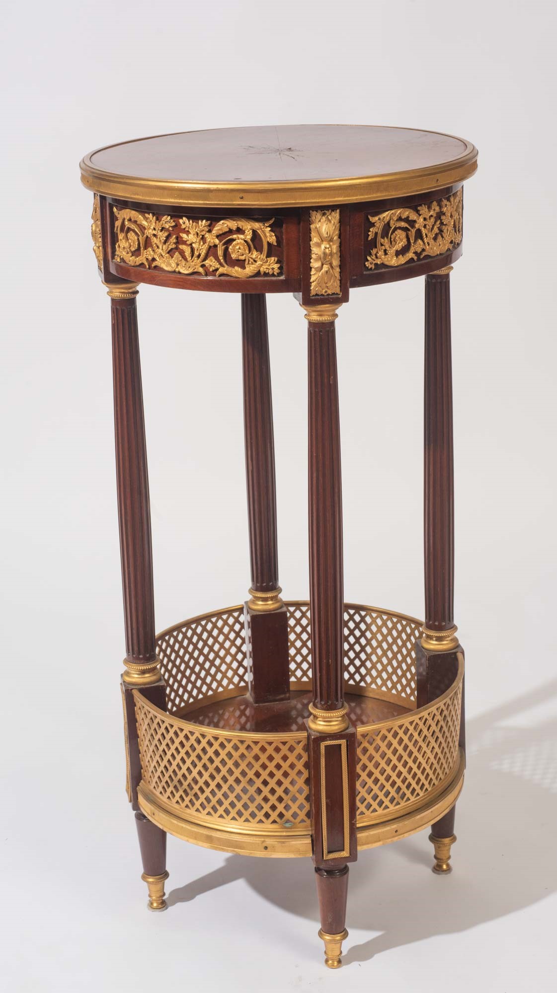In legno di mogano di Cuba. Guarnizioni in bronzo dorato e cesellato. Stampigliato a fuoco.