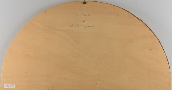 olio su tela applicata su legno