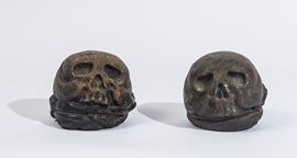 Coppia di sculture raffiguranti teschi, XVI secolo