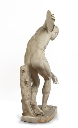 La resa anatomica accurata, l’impostazione su base ovale e la presenza del sostegno arboreo rimandano alla tradizione dei calchi accademici destinati allo studio della scultura classica.