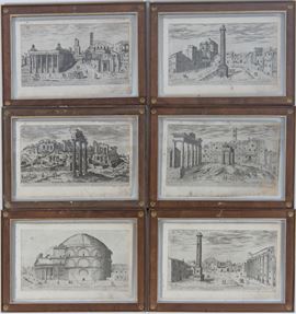 Dodici incisioni tratte da "Vestigi dell'Antichitá di Roma Raccolti et Ritratti in Perspettiva con Ogni Diligentia da Stefano Du Perac Parisino"., 1575