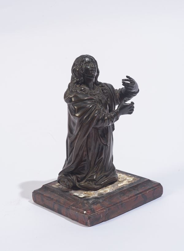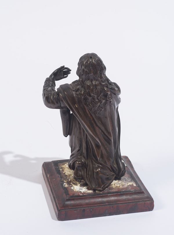 La scultura è completa di sostegno quadrangolare in marmo rosso, dimensioni: 10,5x10,5x10,5 cm.