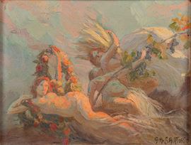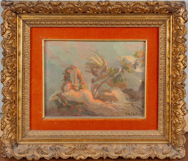 L’opera è verosimilmente uno studio preparatorio per un progetto compositivo più complesso. Firmato in basso a destra. In cornice.