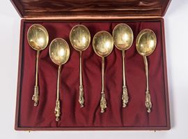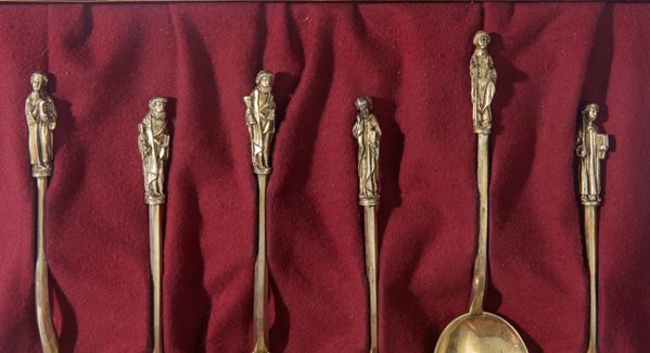 Set di cucchiai in argento Vermeille, Manifattura nord-europea, XIX secolo