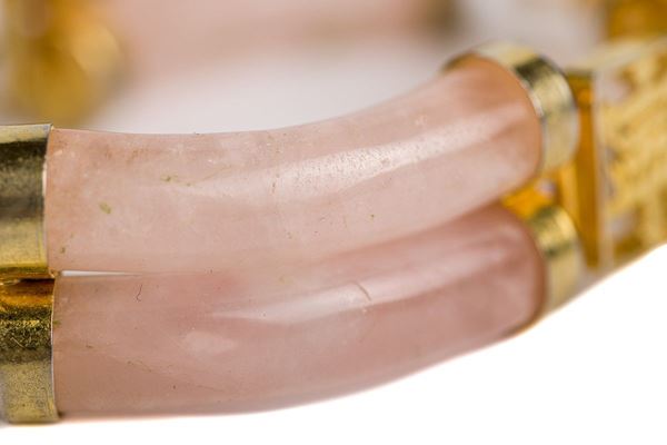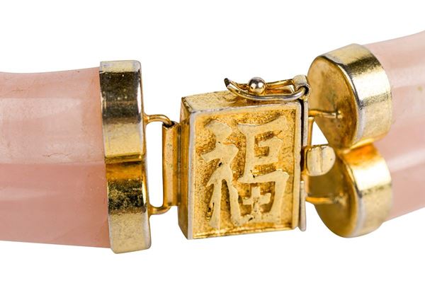 Bracciale in quarzo rosa e metallo, Cina, XX secolo