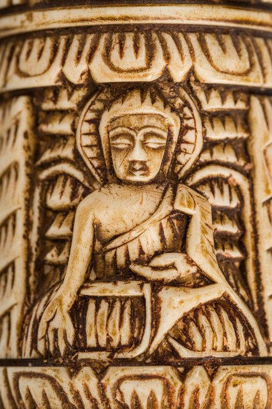 con incise figure buddhiste, all'interno sutra (preghiere) su pergamena