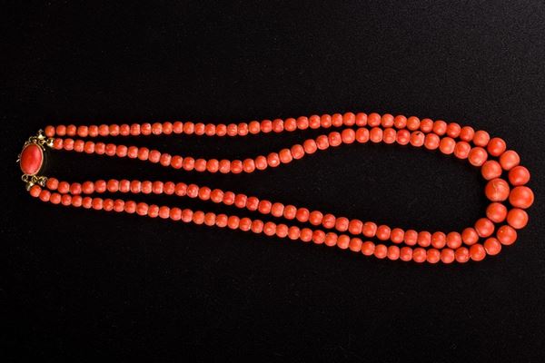 Collana in sfere digradanti di corallo rosso mediterraneo