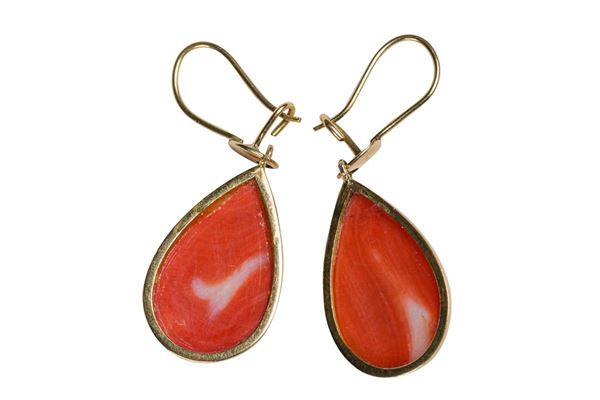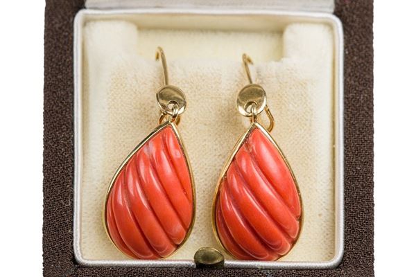 con pendenti in corallo a goccia, peso lordo 7,1 gr