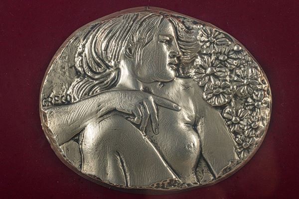 n. 33/750, bassorilievo su lamina d'argento 999/1000, mm 190 x 145, entro teca, con certificato di autenticità
